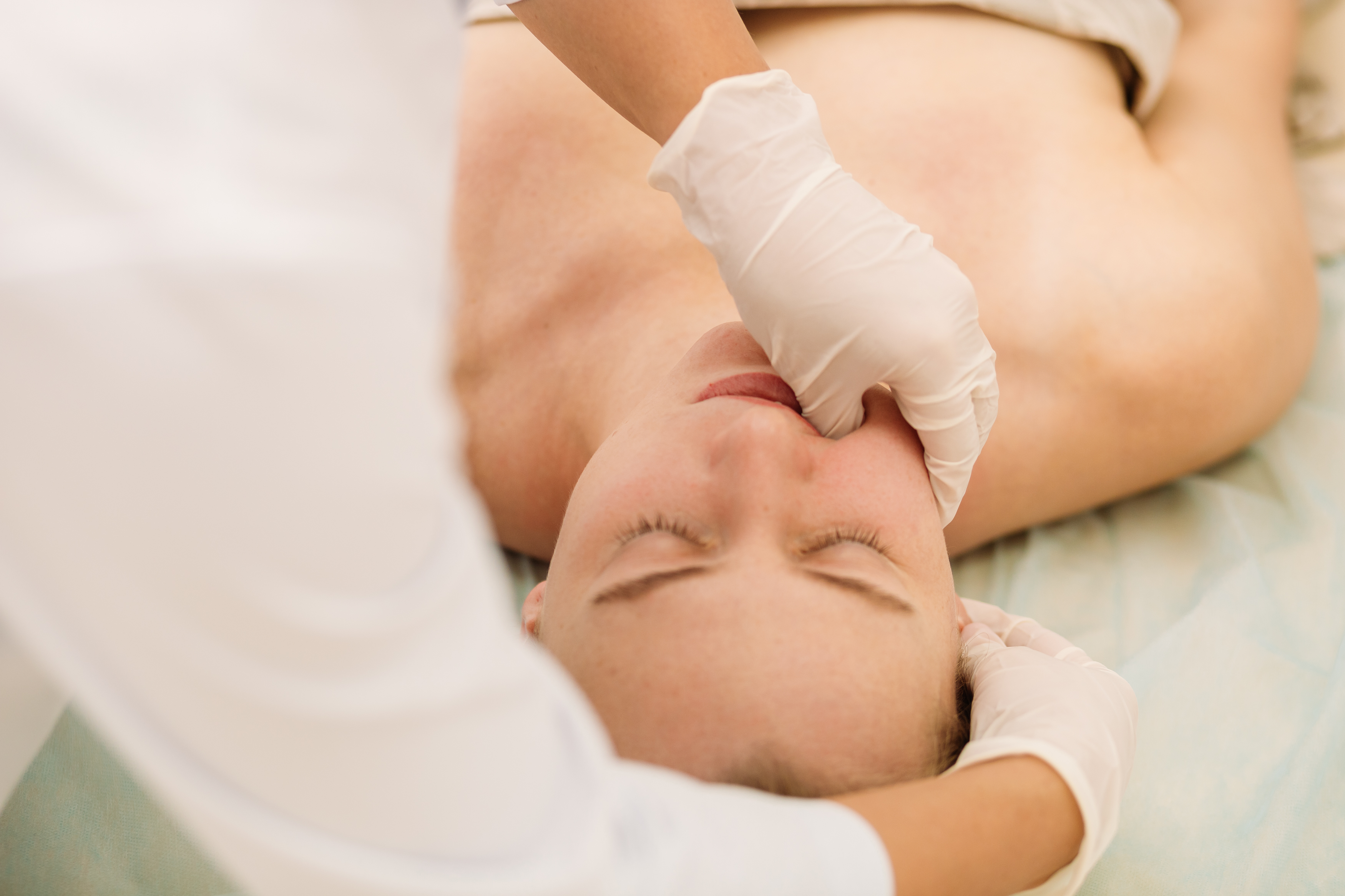 В начале специалист проводит «демакияж» — очистку лица, зоны декольте, шеи и грудного отдела спины с помощью универсальных средств, которые подходят для разных типов кожи. Потом, используя технику миофасциального массажа, руками находит участки напряжения в мышцах и избавляет их от накопившихся спазмов — триггерных точек, по направлению от груди, к шее и лицу.